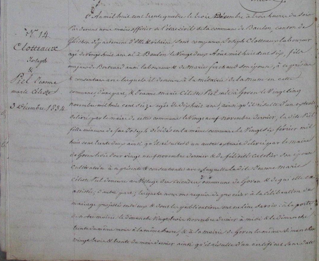 Mariage : 3 décembre 1834 à Baulon 35580