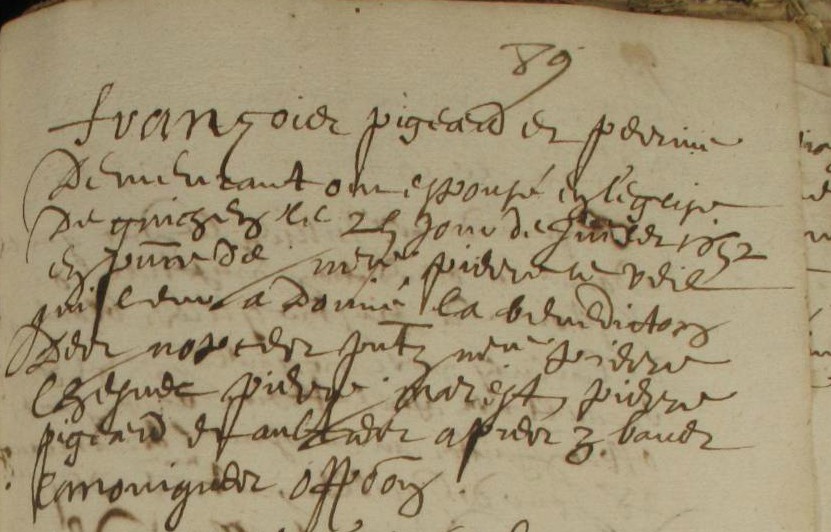 Père : PIGEARD Jean ( < 1589 - > 1627 )