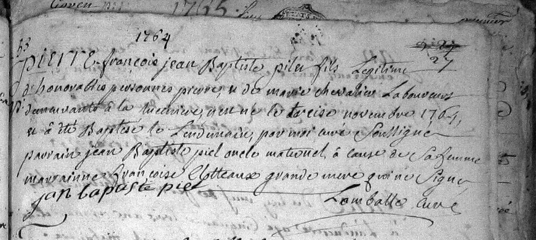 Enfant : PILLET Pierre François Jean-Baptiste ( 1764 - 1845 )