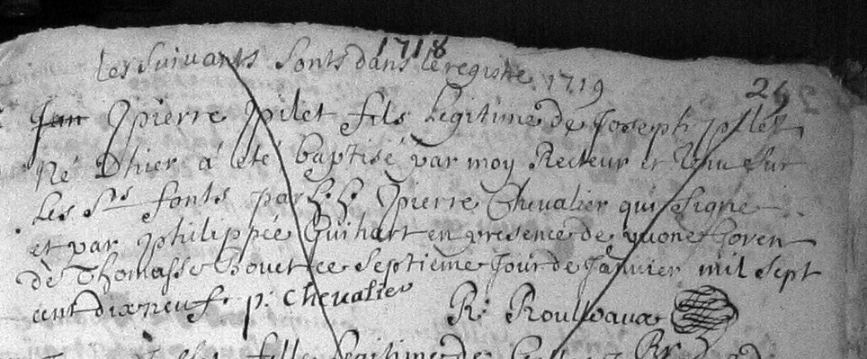Témoins :CHEVALIER Pierre ( 1697 - 1772 )