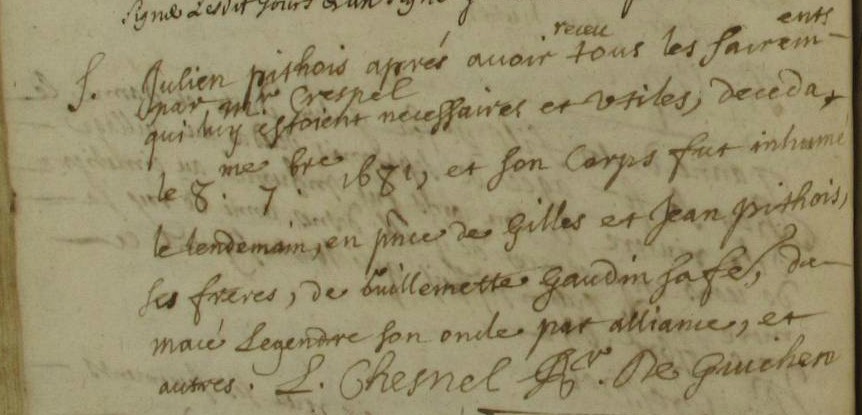 Père : PITHOIS Julien ( < 1625 - > 1674 )