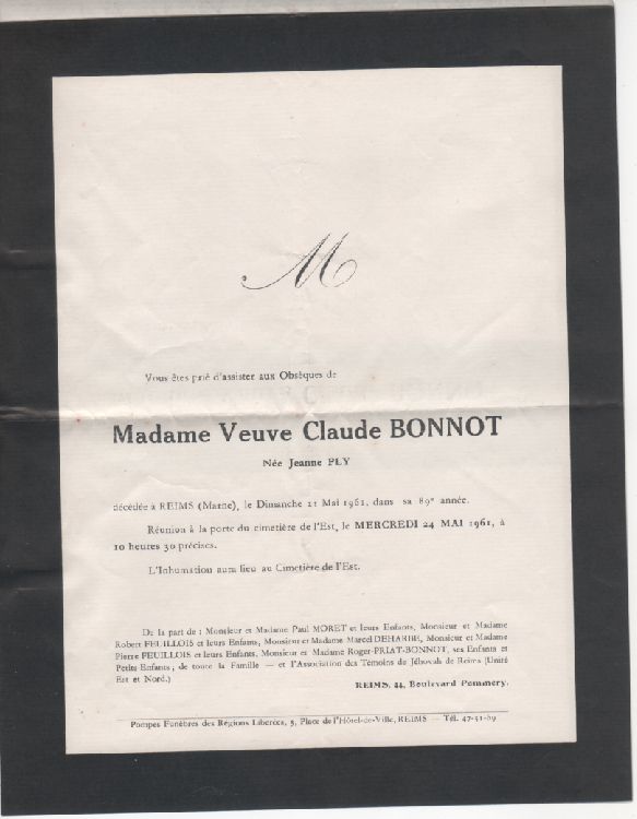 Baptême : calculée 1872 Inhumation : 11 mai 1961 à Reims 51100
