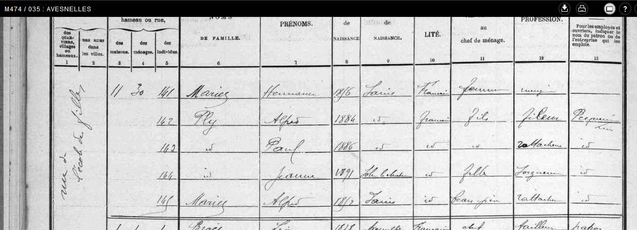 en 1906 habite Avesnelles au n° 11 de la rue de l'école des filles