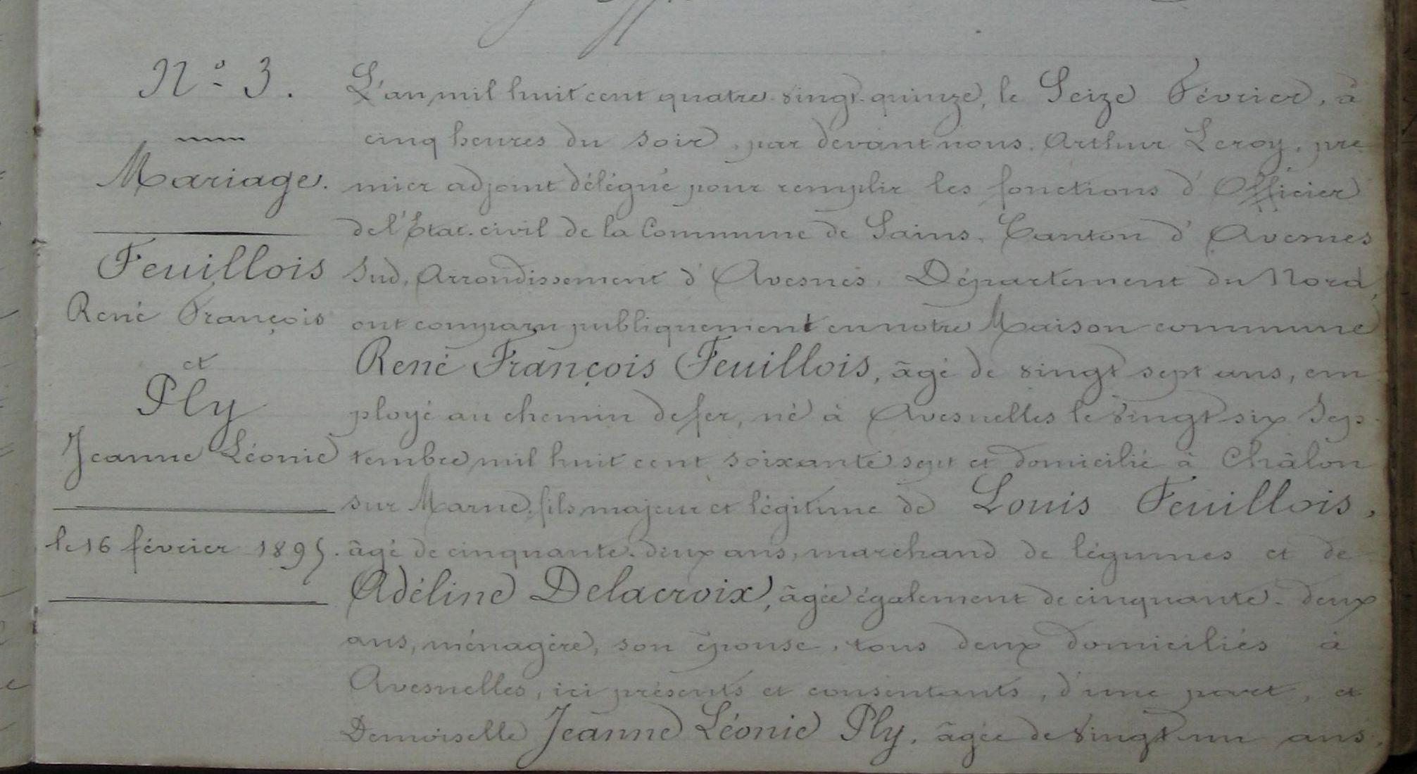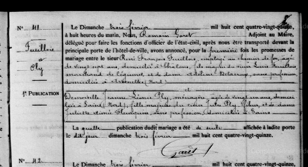Mariage : 5 janvier 1878 à Sains-Du-Nord 59177