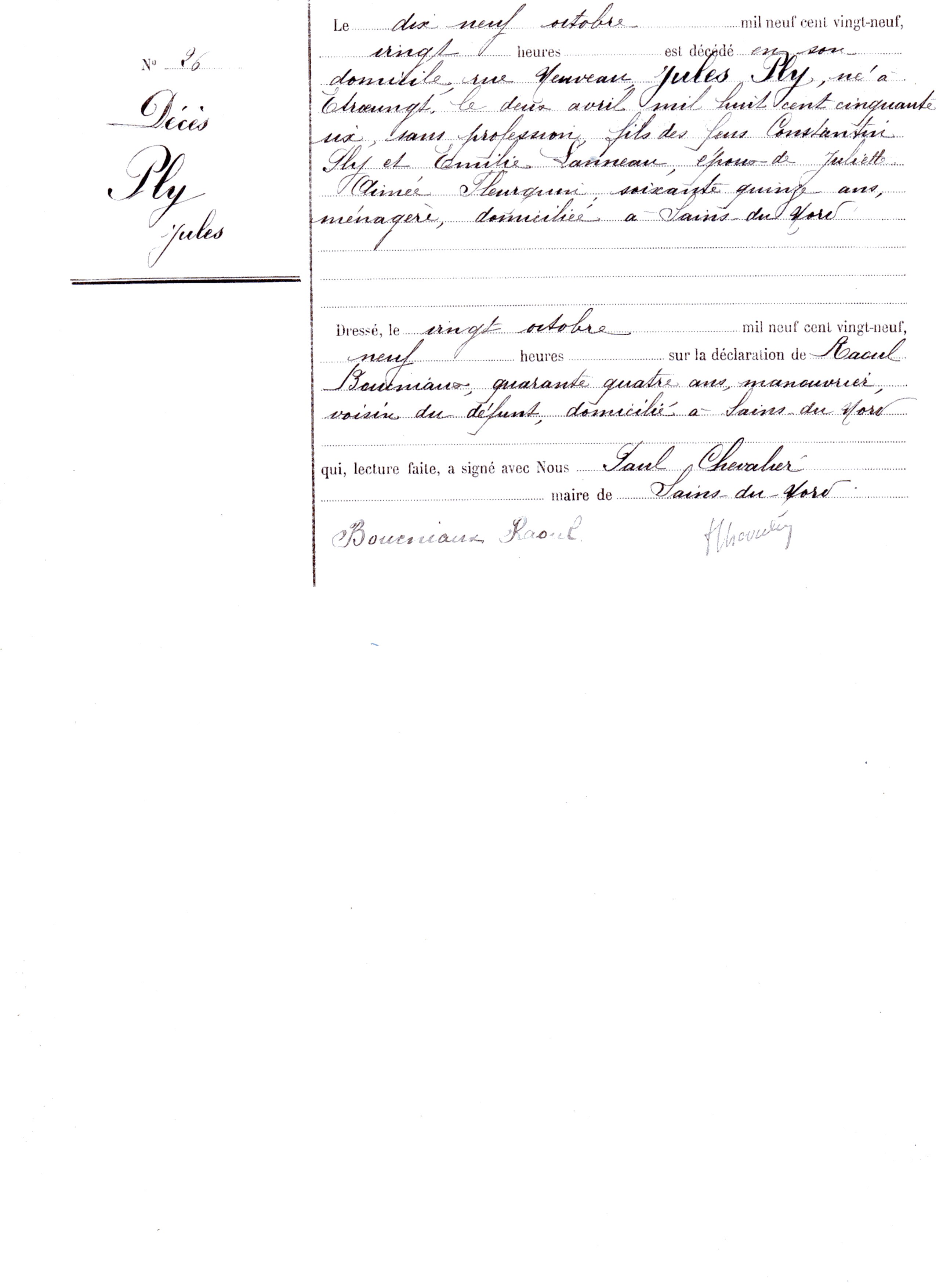 Père : PLY Constantin ou Constant ( 1822 - > 1879 )