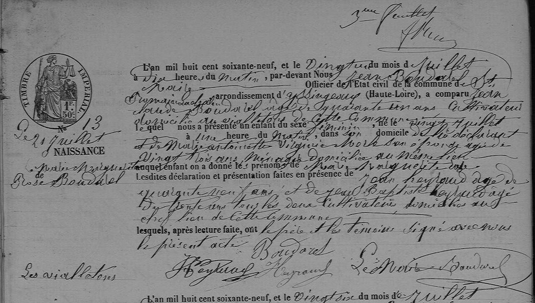 Naissance : 21 juillet 1869 à Saint-Romain-Lachalm 43620 Les Vialletons