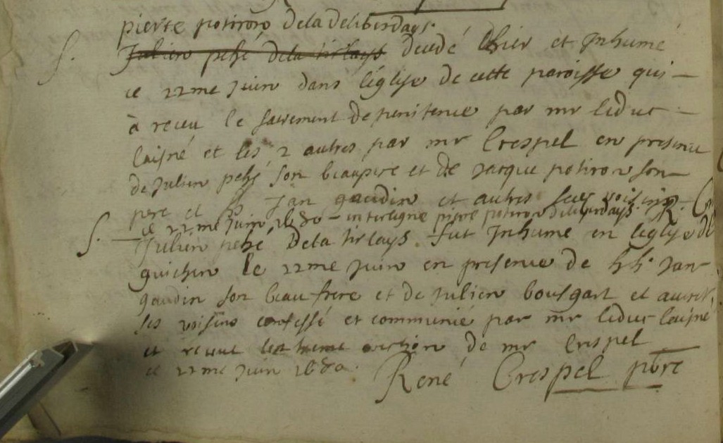 Témoins :PEHE Julien ( < 1640 - > 1680 )