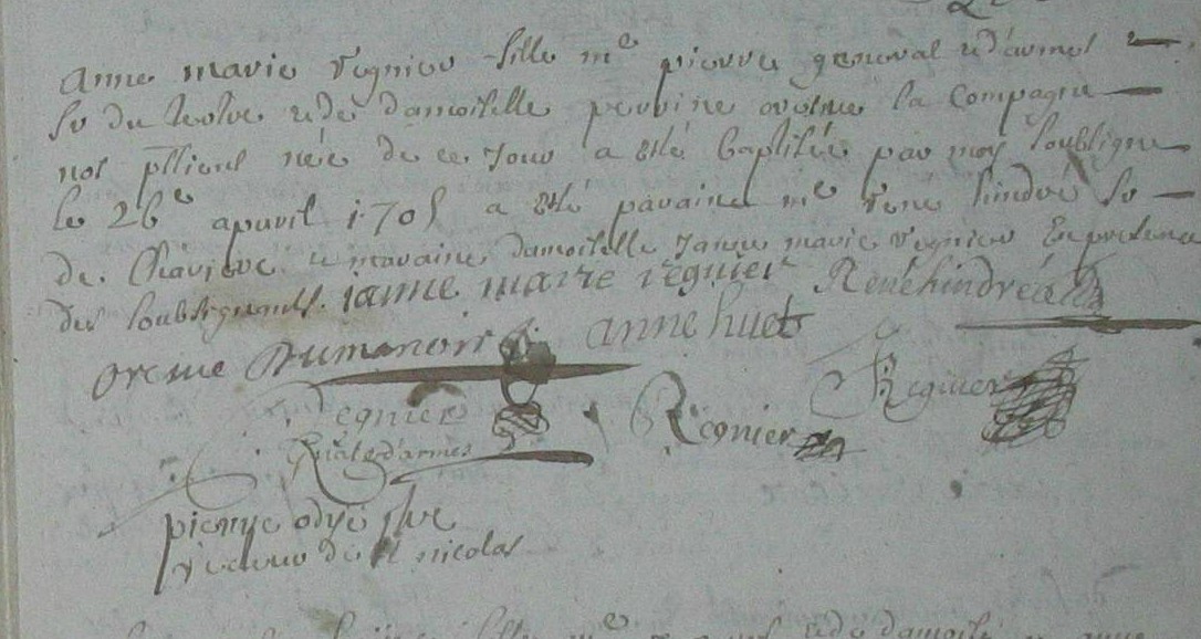 Témoin :REGNIER Jeanne Marie ( < 1695 - > 1715 )