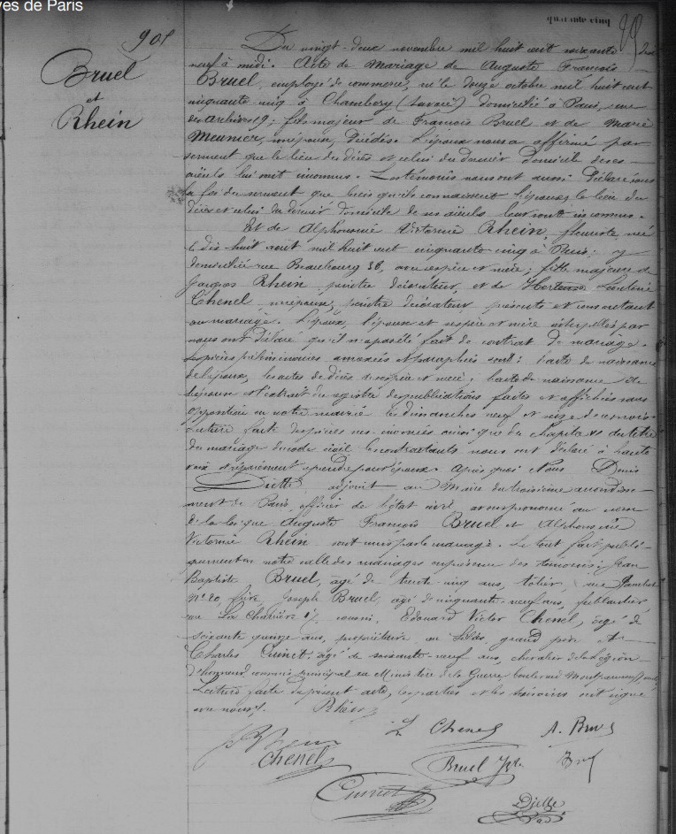 Mariage : 22 novembre 1879 à Paris 3ème 75003