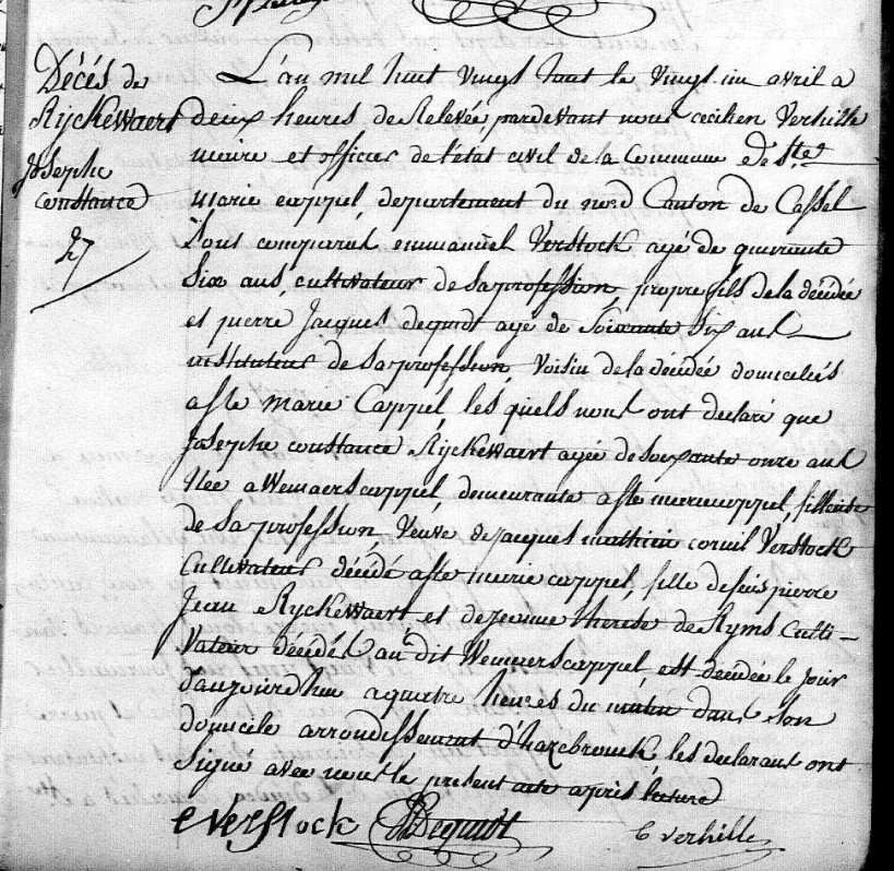 RYCKWAERTDécès : 21 avril 1828 à Sainte-Marie-Cappel 59670