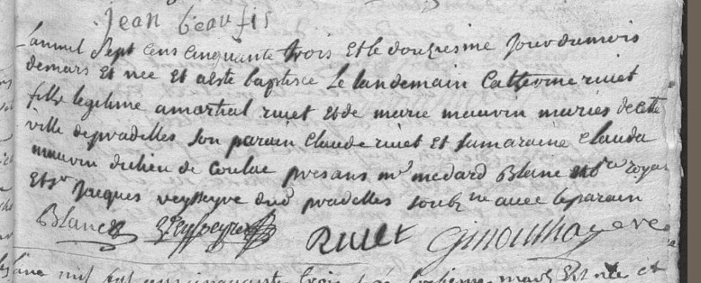 Mère : BLANC Jeanne (Perrine) ( < 1710 - > 1756 )