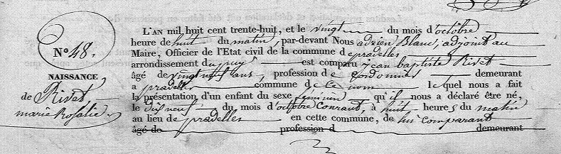 Père : RIVET (Jean) Baptiste ( 1808 - > 1851 )