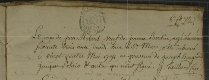 Naissance : calculée 1729 Décès : 24 mai 1792 à Guichen 35580