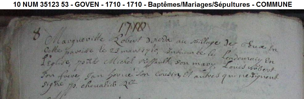 Décès : 23 mars 1710 à Goven 35580 Jeux