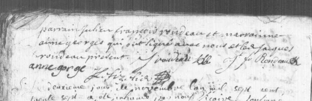 parain Julien François RONDEAU et Maraine Anne GEORGE qui signent