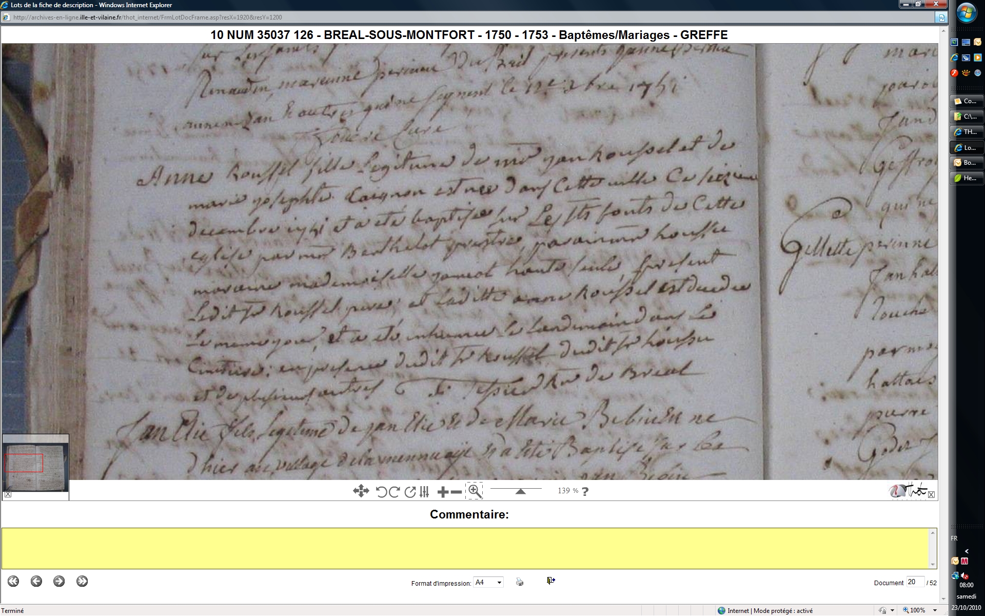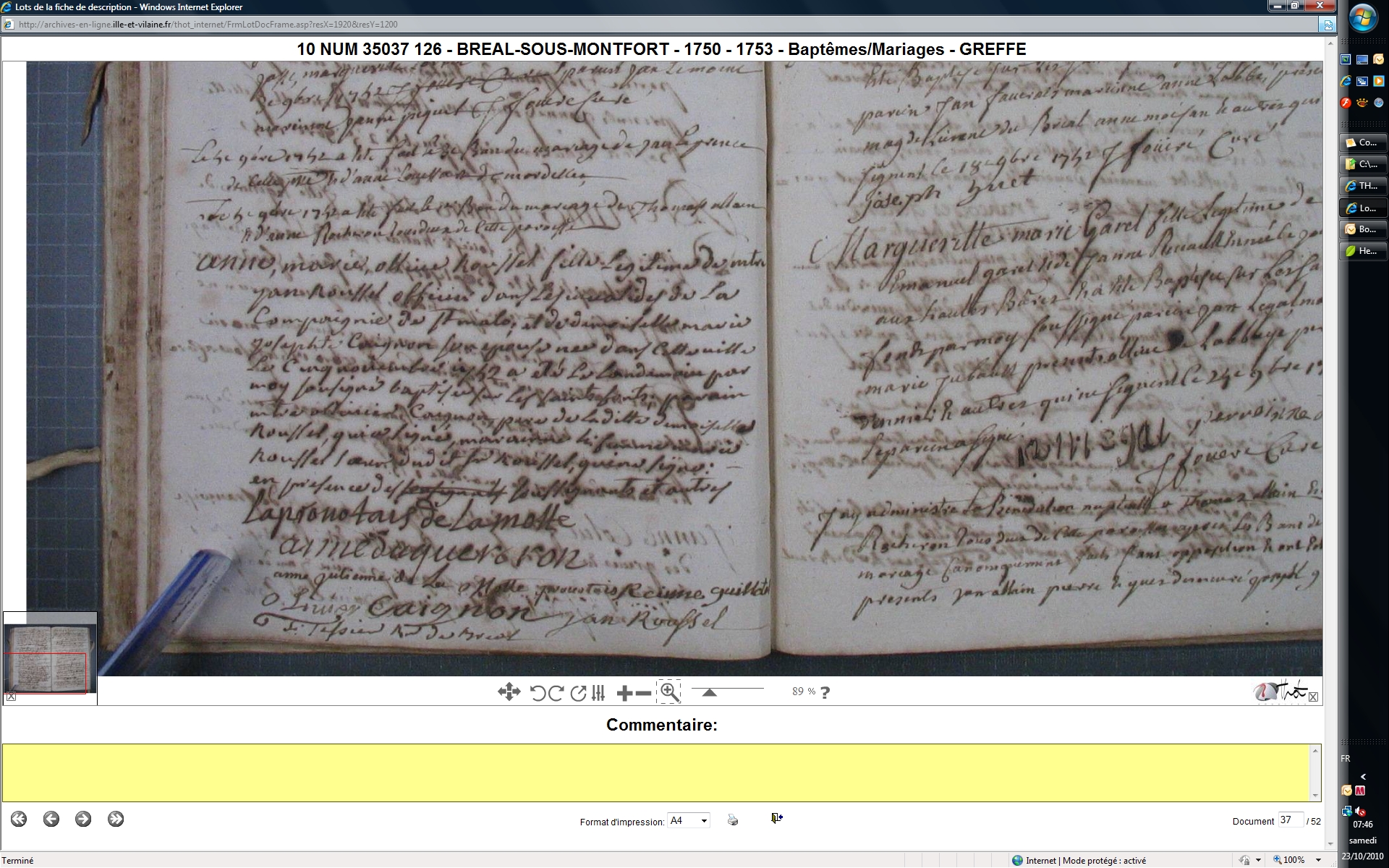 Mariage : 8 janvier 1735 à Bréal-Sous-Montfort 35310