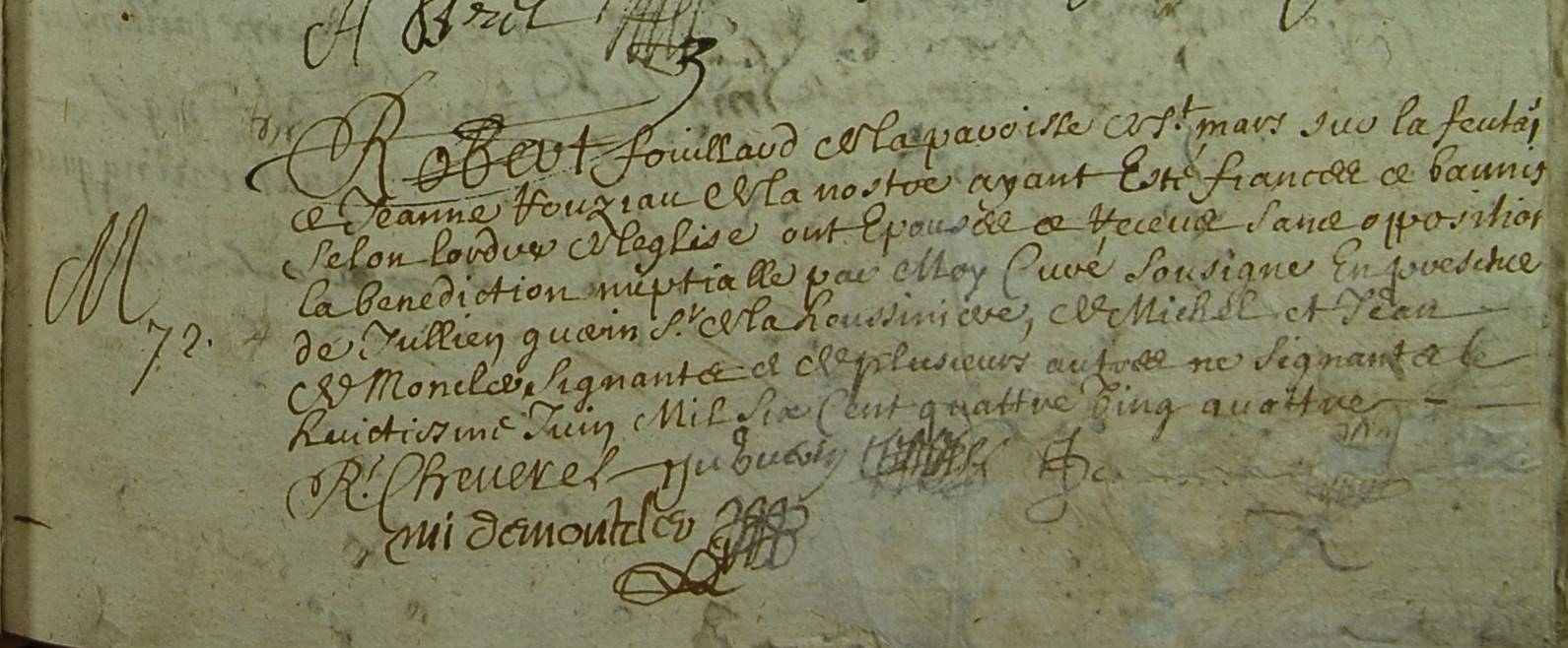 Mariage : 8 juin 1684 à La Bazouge-Du-Désert 35420