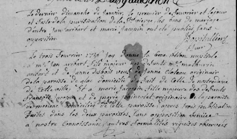 Mariage : 3 février 1756 à Josselin 56120 Saint Martin