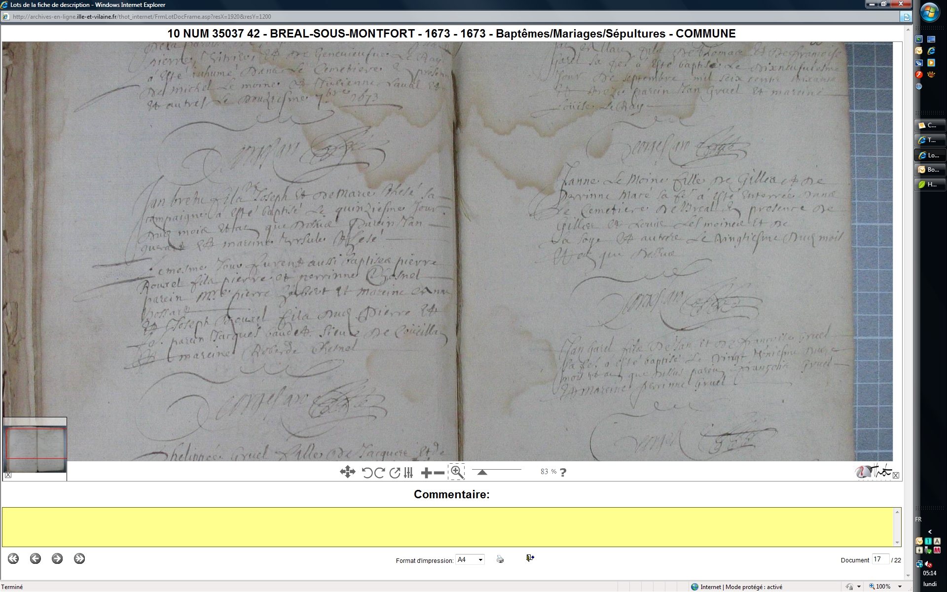 Naissance : avant 1661 à Bréal-Sous-Montfort 35310 Décès : après 1681 à Bréal-Sous-Montfort 35310