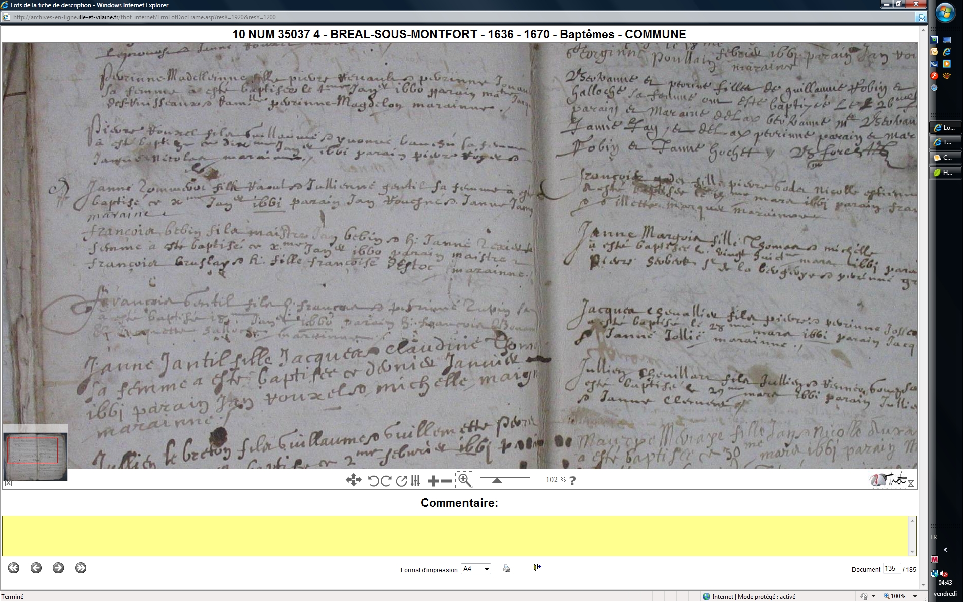 Naissance : avant 1661 à Bréal-Sous-Montfort 35310 Décès : après 1685 à Bréal-Sous-Montfort 35310