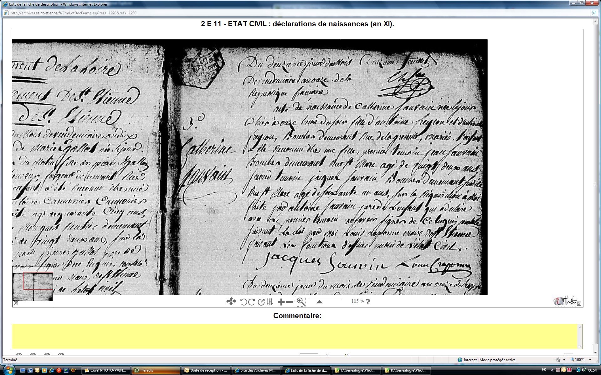 Naissance : 1 vendémiaire an XI à Saint-Étienne 42100 Rue Dupuy