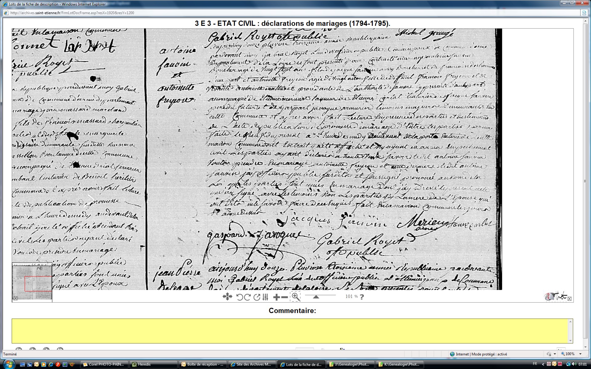 Mariage : 12 pluviôse an III à Saint-Étienne 42100