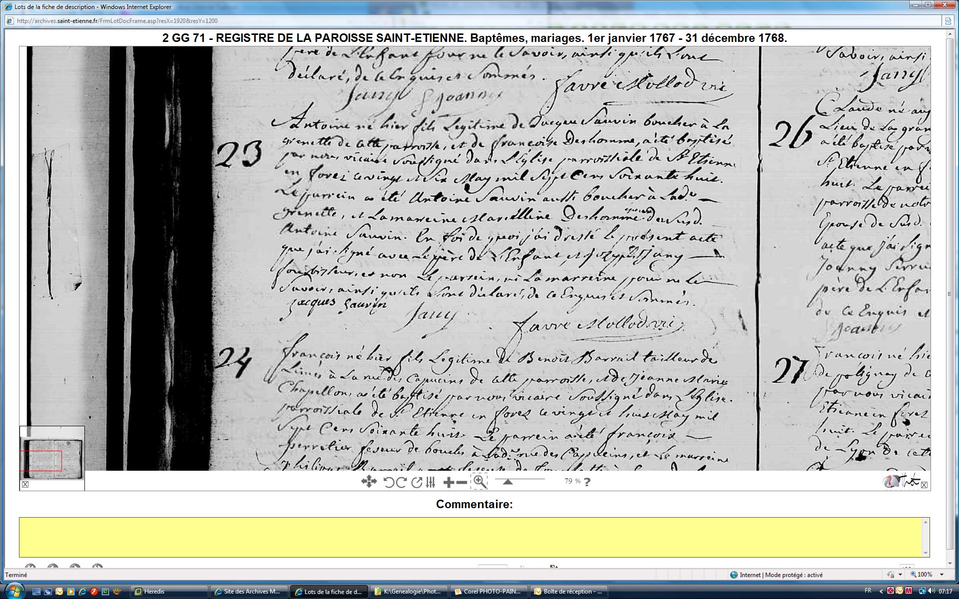 Baptême : 19 juin 1738 à Saint-Étienne 42100
