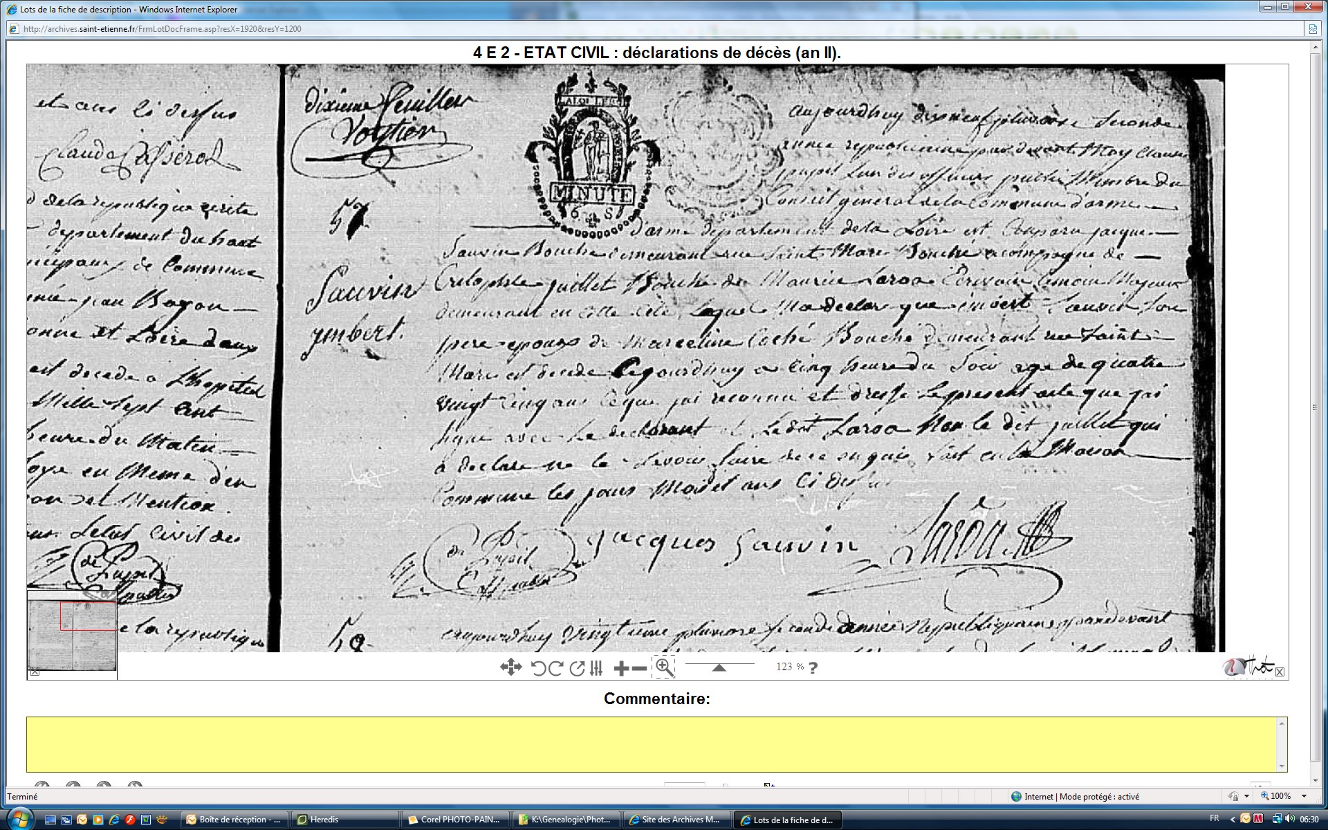 Claudine SAUVIN 1767-Née le 16 septembre 1767 - Saint Etienne Mariée le 8 février 1796 , Saint Etienne,Loire,France, avec Joseph RENODIER 1766- dont