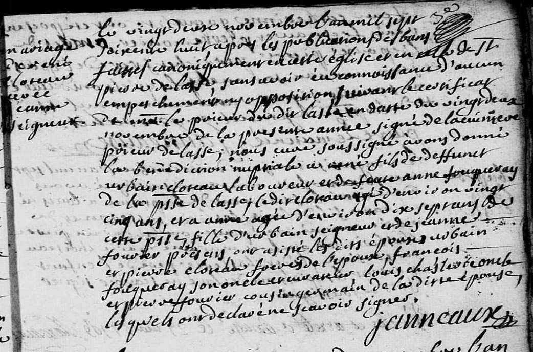 Mariage : 22 novembre 1768 à Chavaignes 49490