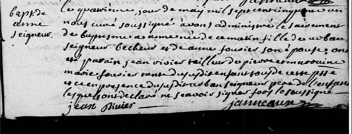 Père : SEGUINIAUX Jean ( < 1635 - > 1700 )