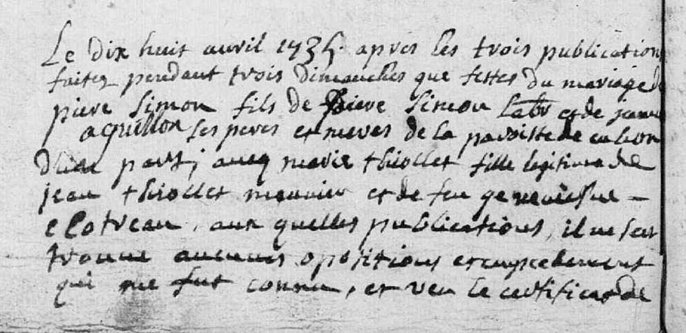 Mère : AQUILLON Jeanne ( < 1700 - > 1735 )