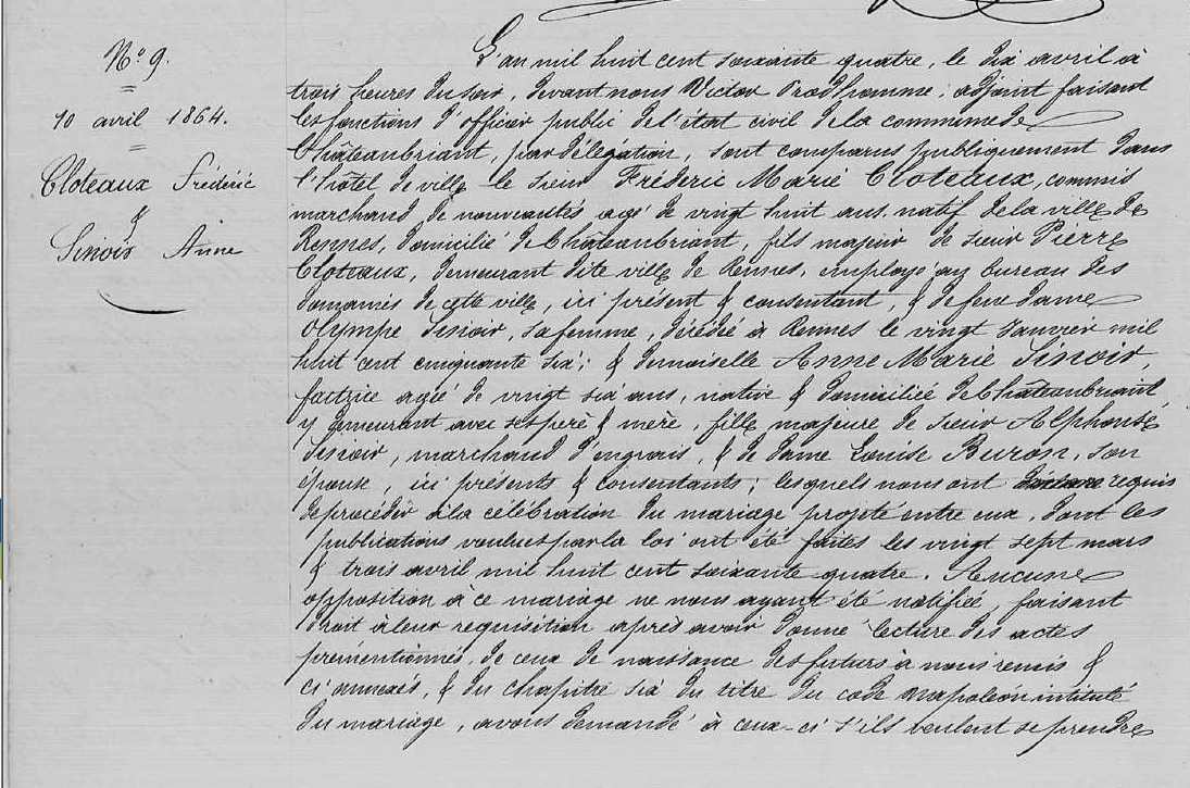 Mariage : 10 avril 1864 à Châteaubriant 44110