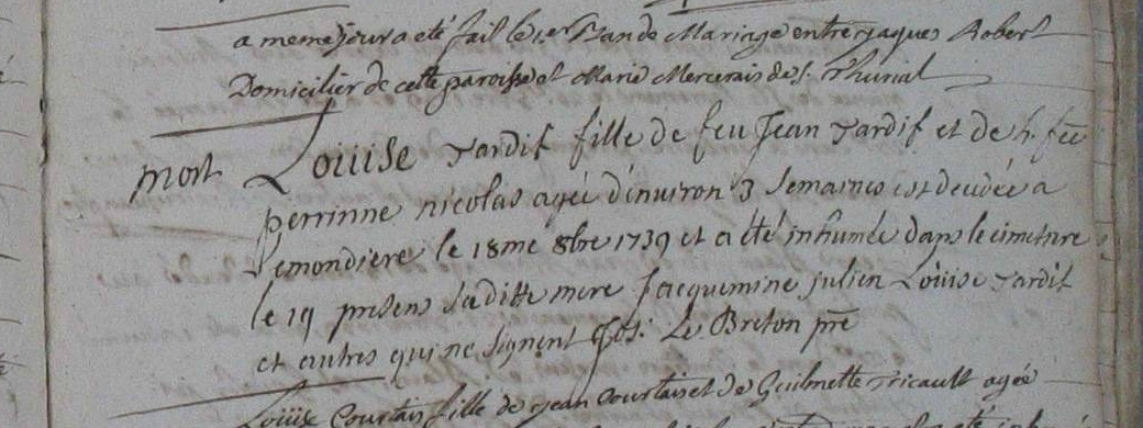 Décès : 18 octobre 1739 à Bréal-Sous-Montfort 35310 L'Ermondière