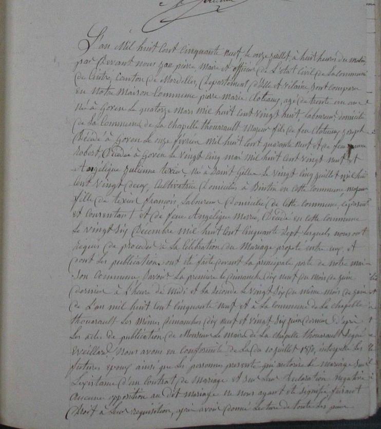 Mariage : 11 juillet 1859 à Cintré 35310