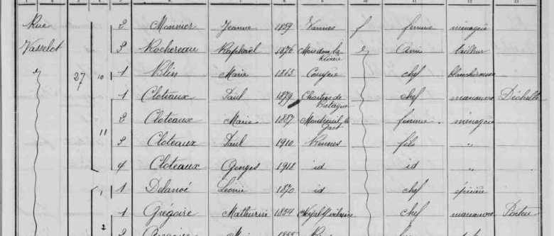 ... Paul Cloteau, journalier. rue Vasselot, 33, et Marie Thébault. domestique, rue Vasselot, 33....
