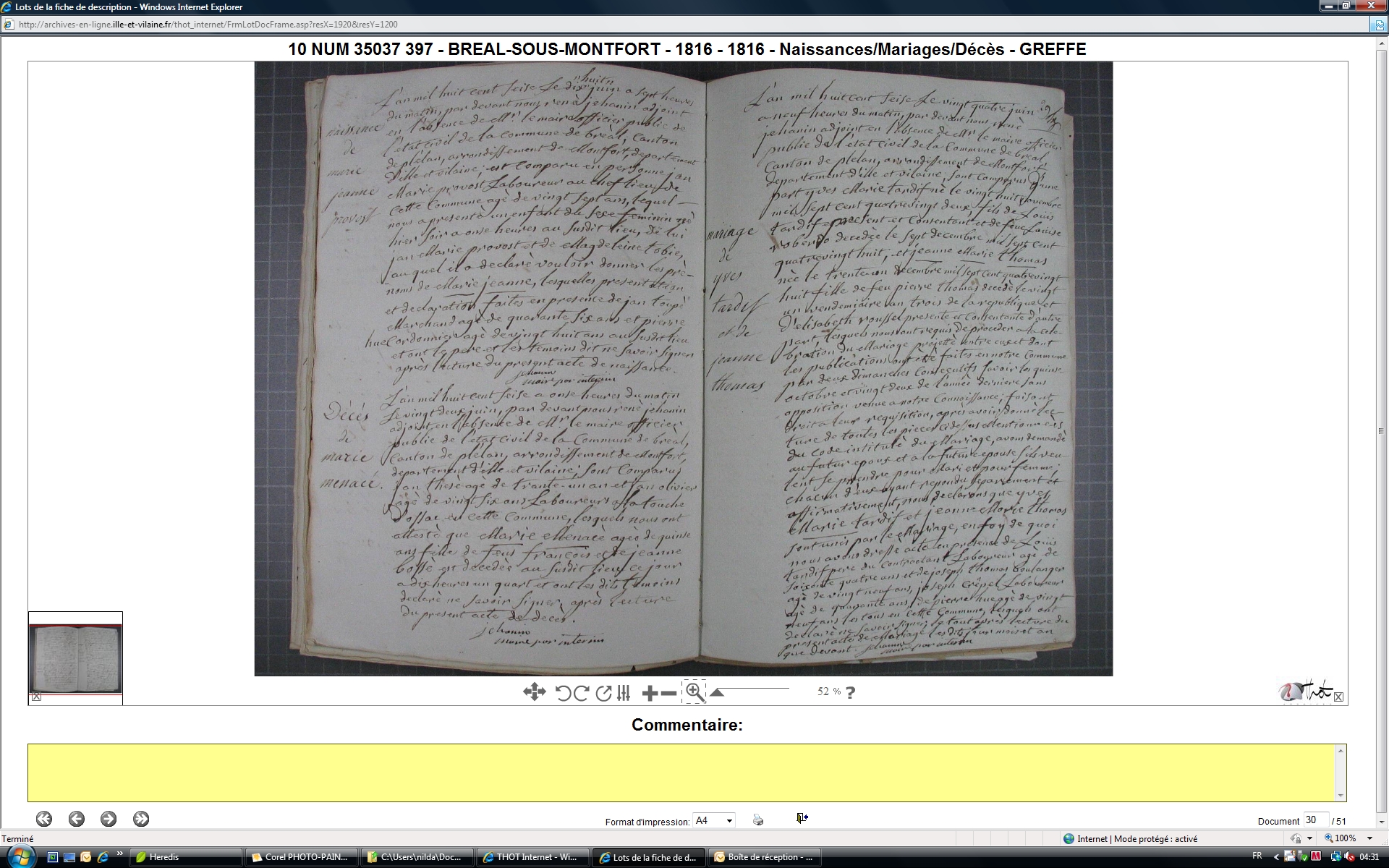 Naissance : 31 décembre 1788 à Bréal-Sous-Montfort 35310