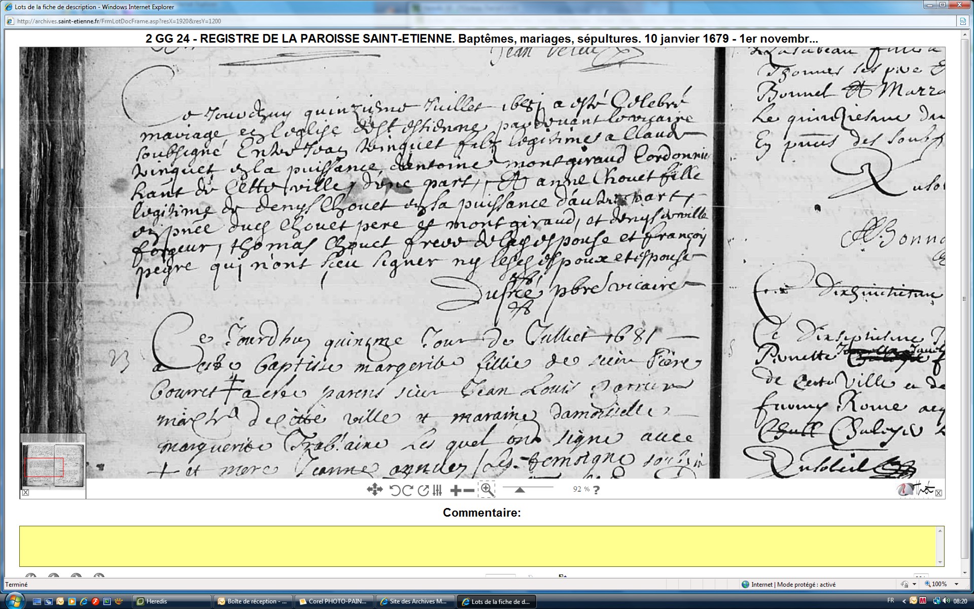 Mariage : 15 juillet 1681 à Saint-Étienne 42100