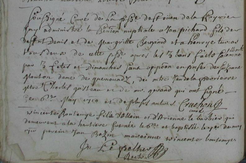 Mariage religieux : 6 octobre 1710 à Saint-Ouen-La-Rouërie 35460