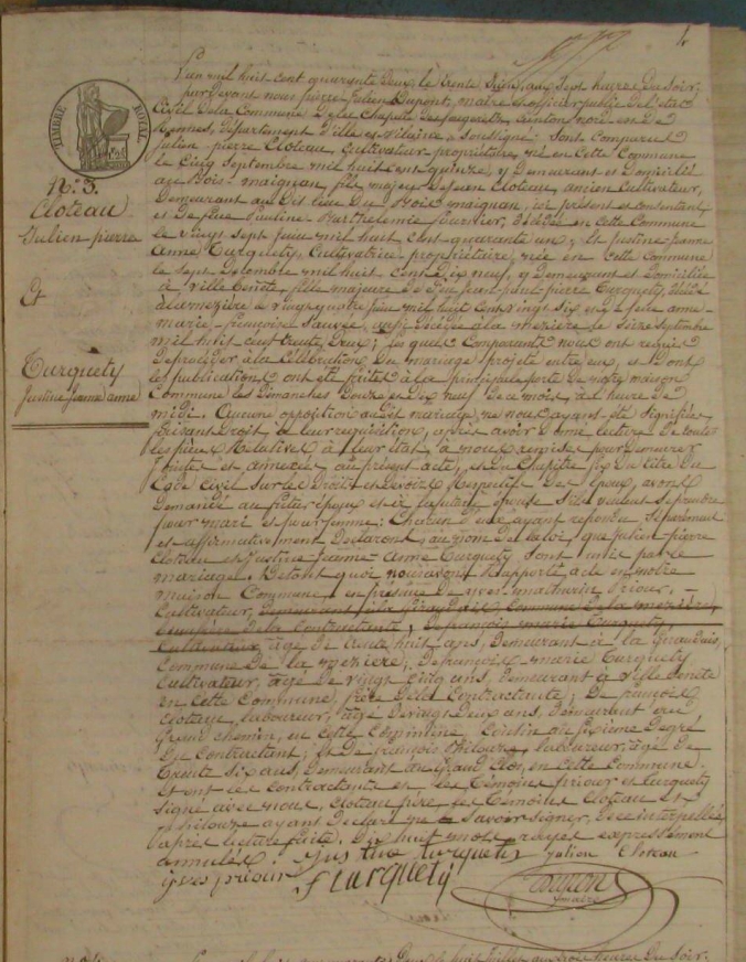 Mariage : 30 juin 1842 à La Chapelle-Des-Fougeretz 35520