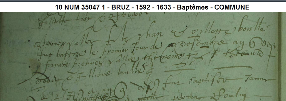 Baptême : avant J 1574 Inhumation : après 6 mai 1624 à Bruz 35170