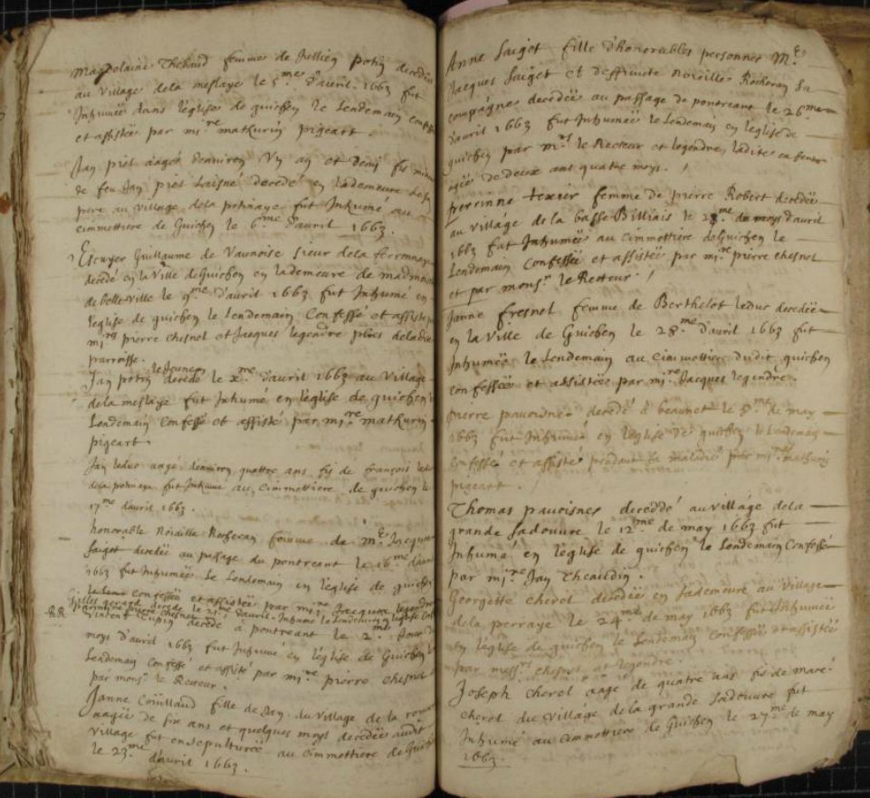 Décès : 9 avril 1663 à Guichen 35580 en la demeure de Madmoiselle de Belleville