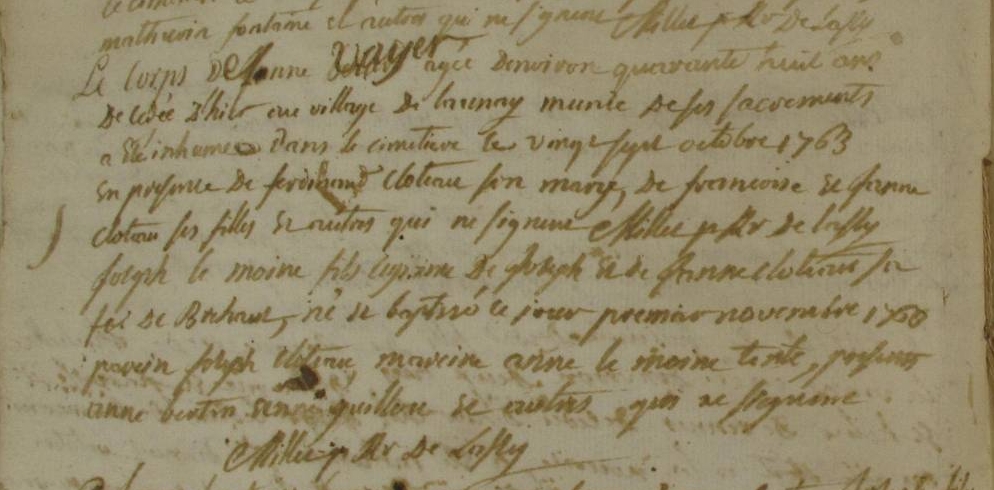 ou VOYER ou VEILLE ou VAGERDécès : 27 octobre 1763 à Lassy 35580 Village de Launay