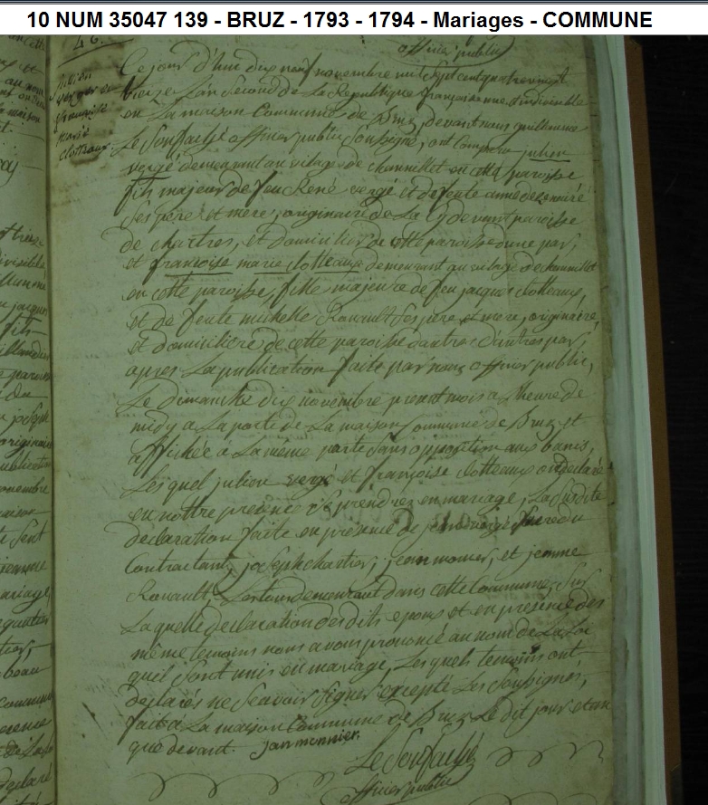 Mariage : 28 janvier 1793 à Iffendic 35750