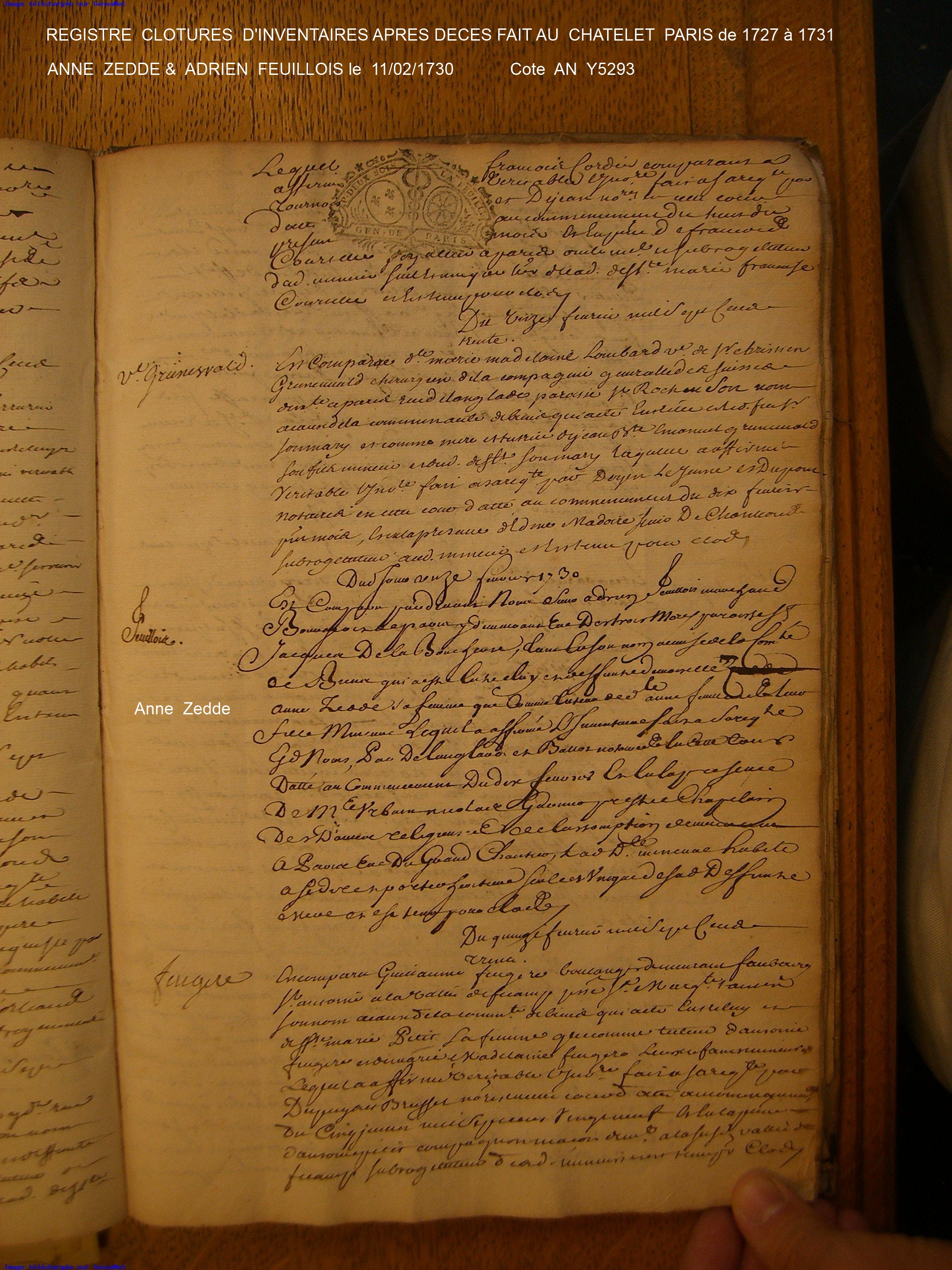 Union : FEUILLOIS Adrien ( < 1710 - > 1730 )