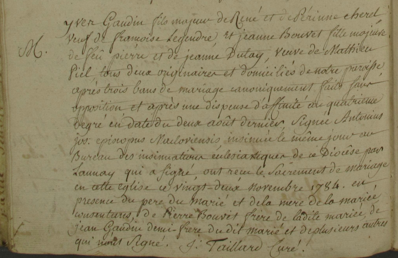 1759 M BOUVET Joseph avec GUILLORET Perrine. Non Maure de Bretagne ?