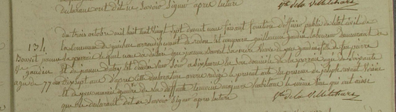 Décès : 3 octobre 1827 à Guichen 35580 La Perrais