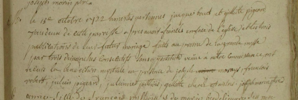Mariage religieux : 13 octobre 1722 à Guichen 35580