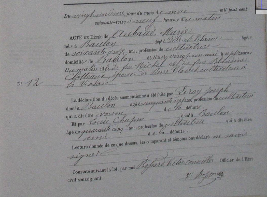 Naissance : 1670 à Baulon 35580 Décès : à Baulon 35580