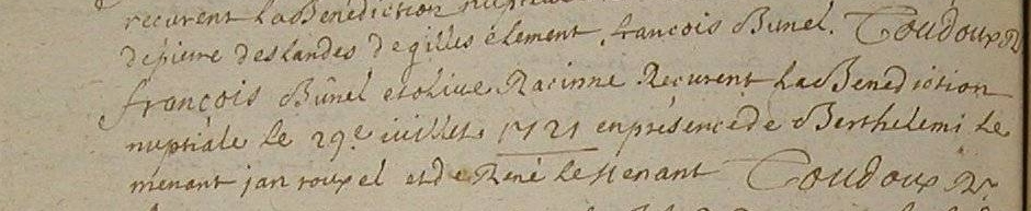 François BUSNEL 1697- marié le 29 juillet 1721 (mardi), Trans-la-Forêt, 35339, Ille et Vilaine, Bretagne, FR, avec Olive RACINE