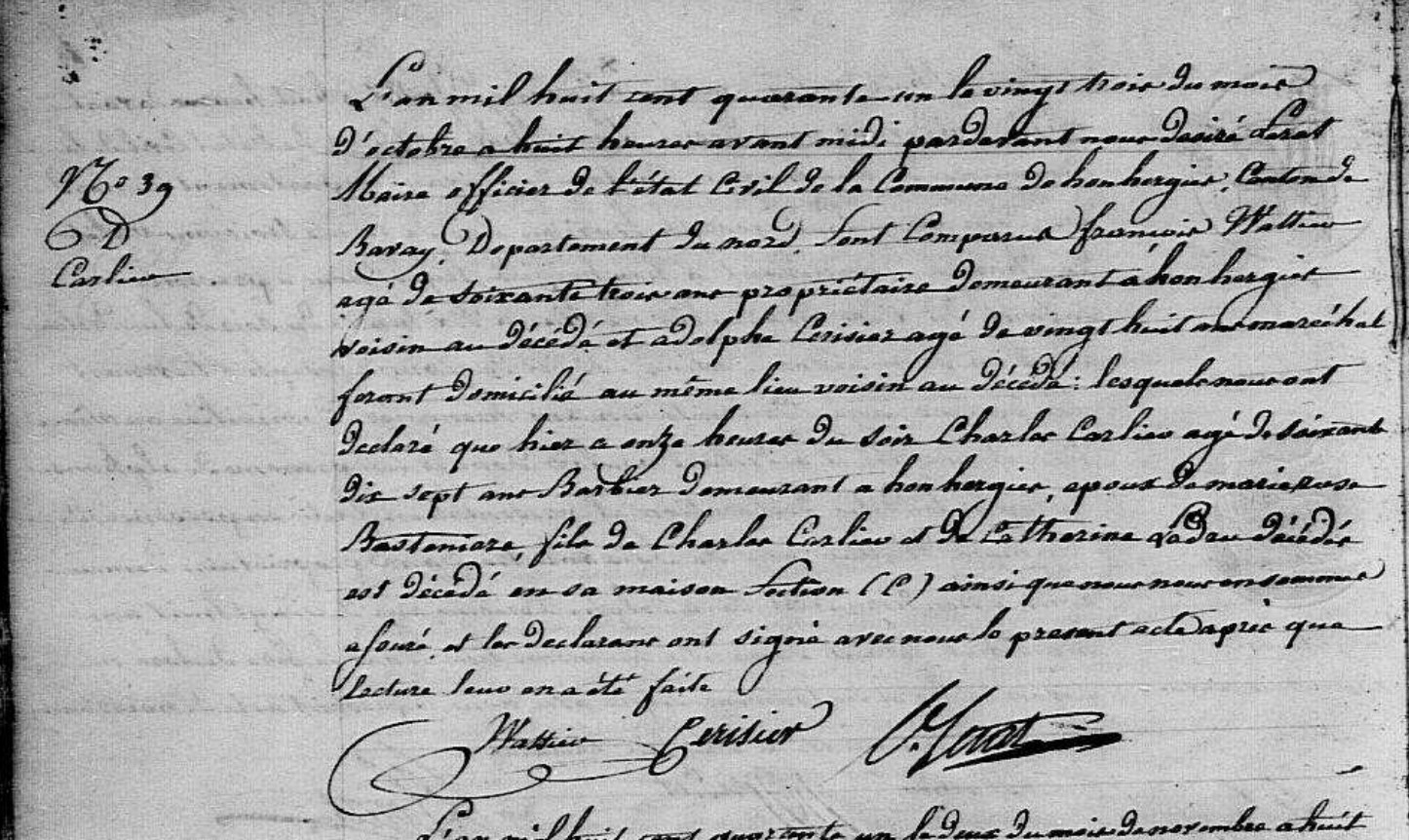 Naissance : vers 1764 à Hon-Hergies 59570 Décès : 22 octobre 1841 à Hon-Hergies 59570